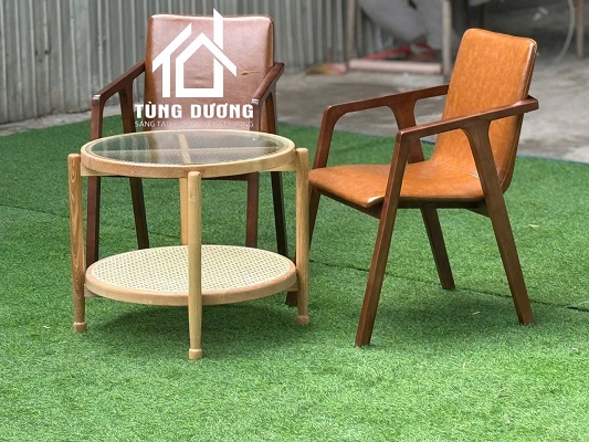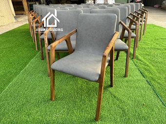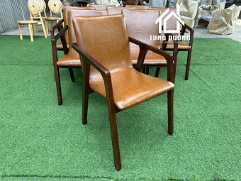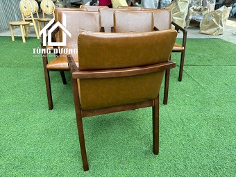 Chất liệu: gỗ caosu, tựa lưng và nệm ngồi da hoặc vải màu theo yêu cầu.