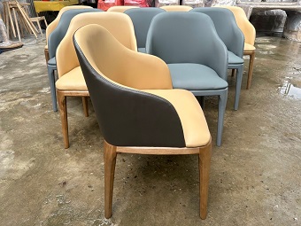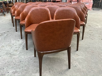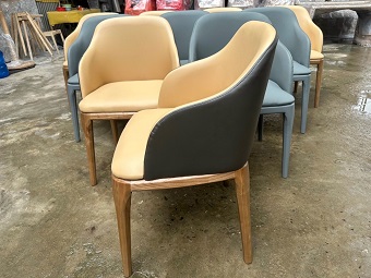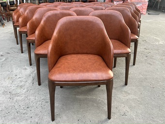 Tựa lưng và nệm ngồi được bọc nệm da hoặc vải màu theo yêu cầu.
