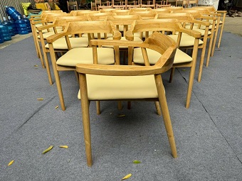 2. Ghế gỗ Hiroshima tựa thấp có mê ngồi gỗ ván polywood vân sồi sơn màu theo yêu cầu.