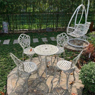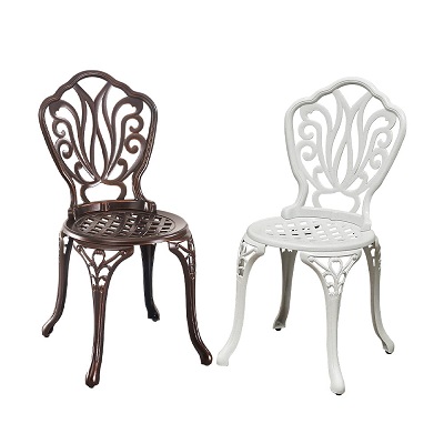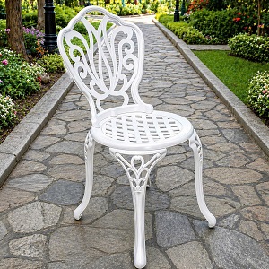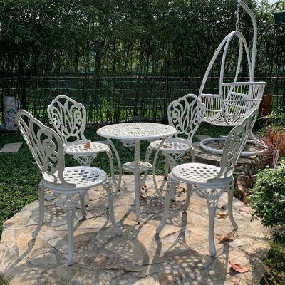 Ghế nhôm đúc A4 sở hữu hoa văn tinh tế, mềm mại phần lưng tựa và chân ghế mang tới vẻ sang trọng, lạ mắt đồng thời có 02 màu trắng và màu đồng phù hợp với nhiều phong cách kiến trúc khác nhau.