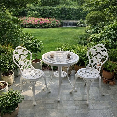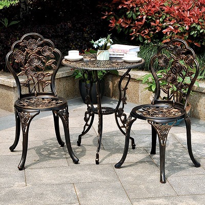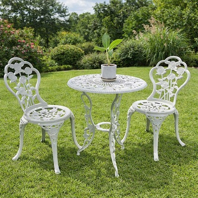 Điểm đặc biệt của chiếc ghế cafe sân vườn này là nó được làm từ hợp kim nhôm đúc cao cấp nên nó rất bền, nhẹ và không bị móp méo. Không chỉ vậy, chiếc ghế này còn được thiết kế theo phong cách nghệ thuật bắt mắt, trang nhã nhưng không kém phần tinh tế.