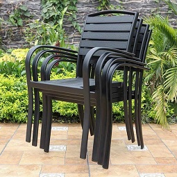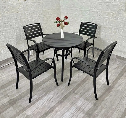 Màu sắc: Bàn và ghế khung nhôm sơn tĩnh điện đen, nan nhựa polywood màu giả gỗ
