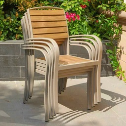 Chất liệu: Khung ghế nhôm đúc, Nan Polywood giả gỗ