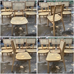 Tựa lưng được làm từ mây nhân tạo đan mắt cáo, tạo nên một vẻ đẹp tự nhiên và tạo điểm nhấn độc đáo cho ghế. Mặt ngồi được uốn cong kết hợp phần tựa lưng mây nhân tạo đan mắt cáo thoáng mát giúp người ngồi cảm thấy thoải mái và dễ chịu, mang lại trải nghiệm thực sự thư giãn.