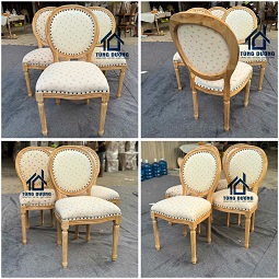1. Ghế LouisXV tựa tròn có tựa lưng nệm gồm : tựa lưng nệm trơn may viền gân, viền đinh đồng và tựa nệm may rút nút