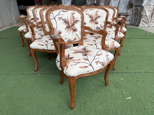 Ghế Louis XVI có tay là mẫu ghế được làm từ gỗ cao su tự nhiên nguyên khối đã qua xử lý cho chất lượng sản phẩm và độ thẩm mỹ cao, màu sắc vân gỗ đạt tiêu chuẩn. Phần mê ngồi và lưng tựa được bọc đệm tạo cảm giác êm ái khi ngồi, chất liệu bọc đệm tùy chọn như da hoặc vải màu sắc linh hoạt dễ lựa chọn.